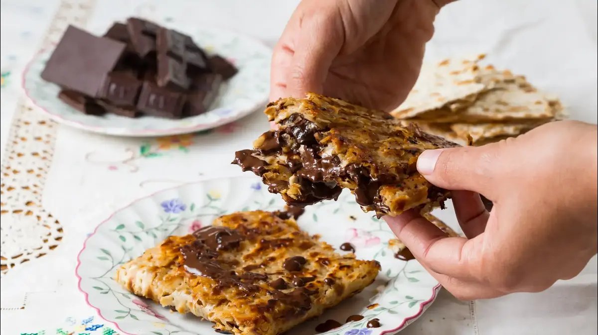 3. חוזרים על הפעולה עם שתי המצות הנוספות וחצי חבילת השוקולד הנותרת.