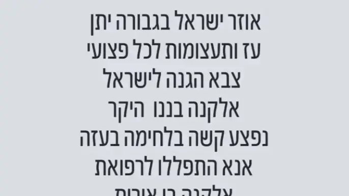 אלקנה לוי, בנה הנוסף, נפצע אמש (שני) בעזה. בפוסט בפייסבוק ביקשה אורית להתפלל עבור רפואתו.