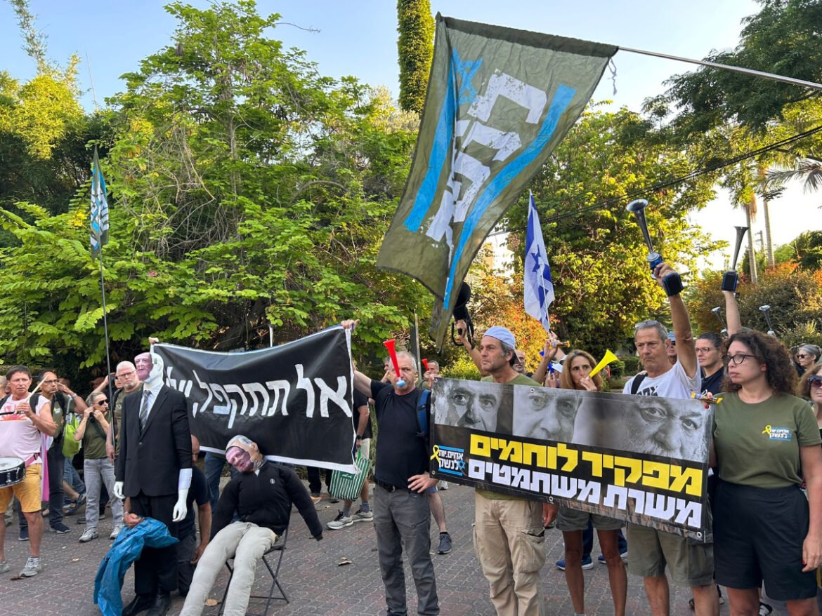 פעילי ארגון "אחים ואחיות לנשק" קיימו הבוקר (ראשון) מחאה מול ביתו של יו"ר ועדת החוץ והביטחון, חבר הכנסת יולי אדלשטיין, בעקבות קידום חוק הגיוס אשר יסדיר את ההשתמטות של רוב המגזר החרדי משירות צבאי.