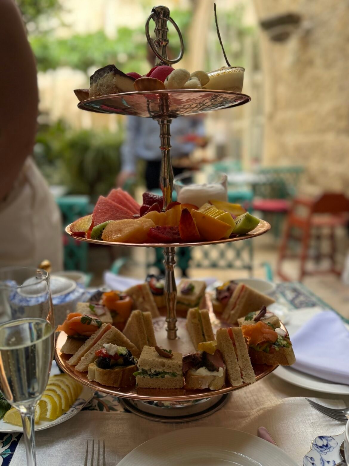 אחת החוויות המיוחדות שהמלון מציע היא ה-High Tea המשודרג – חוויה בריטית אותנטית המוגשת בכלי חרסינה מסורתיים. על מגש בן שלוש קומות מוגשים מגוון כריכונים כגון סלמון על מצע גבינת שמנת, קרפצ'יו מלפפון טרי עם חמאה, קרפצ'יו עגבנייה מעושנת, ביצה קשה עם אורוגולה ומיונז, ועשבי תיבול ברוטב טרטר. לקינוח מוגשים עוגיות סקונס בטעמים טבעיים או עם ניחוח קינמון, לצד ריבה וחמאה עשירה, פלחי פירות העונה עם קצפת, ומבחר תיונים משובחים. שעת התה מתקיימת בפטיו המלון מדי יום בין 15:00 ל-18:00, בתיאום מראש בלבד.