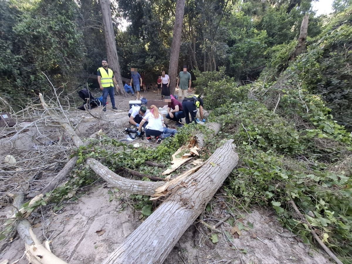בשעה 16:18 התקבל דיווח במוקד 101 של מד"א במרחב כרמל על פצועים כתוצאה מעץ שנפל בשטח פתוח סמוך לנחל השופט. חובשים ופראמדיקים של מד״א פינו אותו במצב קשה עם חבלת ראש וגפיים תחתונות, ואישה כבת 40 במצב בינוני עם חבלת ראש.