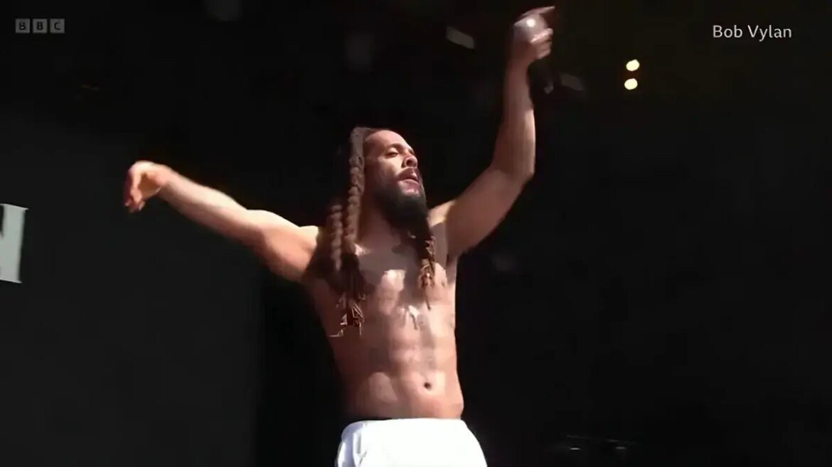 בוב ויילן, שמערבבים סגנונות של גריים, פאנק והיפ-הופ, עלו לבמה מול קהל עצום שנופף בדגלי פלסטין – והפכו במהרה לשם החם של היום הראשון בפסטיבל. ההתבטאויות שלהם תפסו את ה-BBC בהפתעה, מאחר שאת ההופעה של הלהקה האירית Kneecap, רשות השידור הבריטית בחרה לא להעביר לייב אלא להסתפק בהעלאת המופע ל-VOD, לצד שאר ההופעות מהפסטיבל.