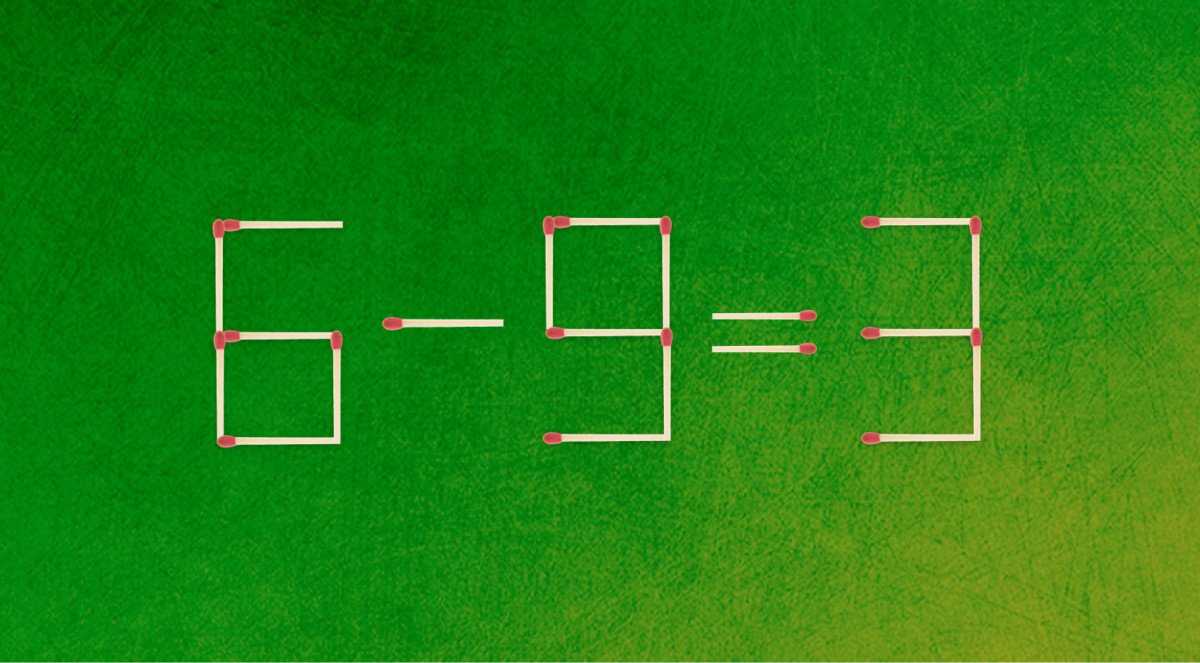 לפניכם תרגיל שגוי, 6-9=3, המורכב מ-20 גפרורים. עליכם להזיז גפרור אחד, כדי לשנות את המשוואה ולהגיע לפתרון ההגיוני. התשובה בתחתית הכתבה.