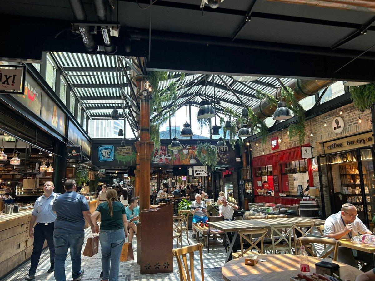 שעה לפני הצהריים בשרונה מרקט, ואוויר הציפייה הגדול, זה שהבטיח שוק שוקק כמו צ’לסי מרקט הניו-יורקי, מתחלף באוויר של נוחות קצת עצלה. זה לא שאין אנשים: יש חיילים מהקריה שבאו לאכול, עובדי משרדים סמוכים, כמה בני נוער בחופש הגדול שנראים כאילו הם מחפשים את הטיקטוק הבא, ואנשים מבוגרים שמרשים לעצמם גלידה באמצע היום, אולי כהתרסה נינוחה נגד היוקר. אבל העומס? הלחץ? הדוחק שגורם לך לתפוס שולחן כאילו אתה קונה דירה, נשאר מחוץ לתמונה.