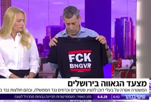 המגיש יואב לימור נופף הבוקר (שישי) בשידור בחולצת "פאק בן גביר", במחאה על כך ששוטרים מנעו אתמול את מכירתה של החולצה הלועגת לשר המופקד על המשטרה במהלך מצעד הגאווה בירושלים.