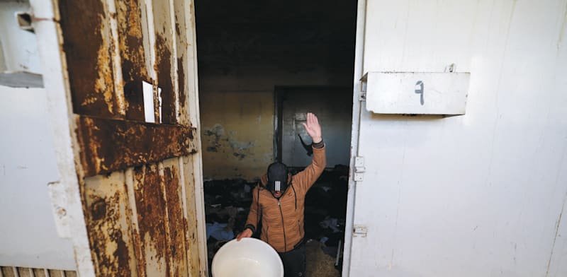 אסיר לשעבר בכלא סיידנאיא חוזר לשם אחרי הפלת המשטר. "התחלנו כ־25 איש. בסוף נשארו רק שמונה", סיפר אחד מהם / צילום: Reuters, Zohra Bensemra