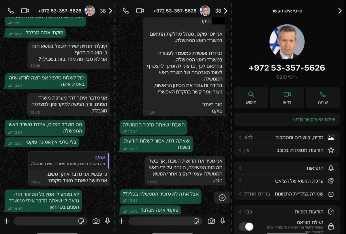 באחד מניסיונות אלו, התחזו האיראנים למזכיר הממשלה יוסי פוקס. "נבחרת ואושרת כמועמד לעבודה במשרד ראש הממשלה", כתבו האיראנים לאזרח הישראלי. עם זאת, הישראלי הבין במהירות את התרמית: "חשבתי שאתה מזכיר הממשלה. ושאתה דתי, אסור לשלוח הודעות בשבת". לאחר שיחה קצרה, ואפילו משעשעת, כתב לו: "לא נשמע לי אמין כל הסיפור הזה. נראה לי שאתה מדבר איתי ממשרד הפנים בטהרן.