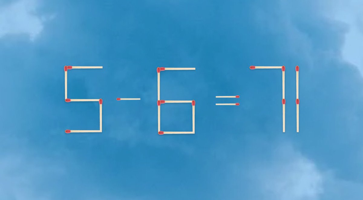 לפניכם תרגיל שגוי, 5-6=71, המורכב מ-19 גפרורים. עליכם להזיז גפרור אחד, כדי לשנות את המשוואה ולהגיע לפתרון ההגיוני. התשובה בתחתית הכתבה.