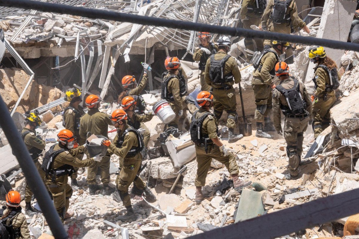 בשעה 2:40 היו כל לוחמי הגדוד כבר בשטח הכינוס בכניסה לתל אביב. "קיבלתי אישור: ברגע שהאזעקה מתחילה – אנחנו נכנסים פנימה". כמה שעות לאחר מכן פגע טיל ראשון במבנה בעיר. למרבה המזל לא היו הרוגים או נעדרים, אך הלילה הראשון היה רווי פעילות. "מצאנו את עצמנו סורקים ומחפשים. היינו צריכים לטפס עשרות קומות ברגל כדי לחפש במהירות נפגעים ולכודים", מספר סא"ל ב'. "בהמשך הגדוד פעל בזירות פגיעה גם בבני ברק ובפתח תקווה, חילץ לכודים – וגם כאלה שלא היו בחיים. שבועיים של הפעלה אינטנסיבית".