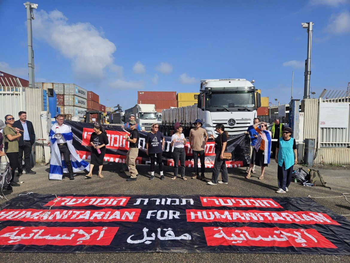 פעילי צו 9 חוסמים את הסיוע ההומניטארי בנמל אשדוד. 27.5.25 (צילום: צו 9)
