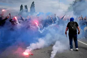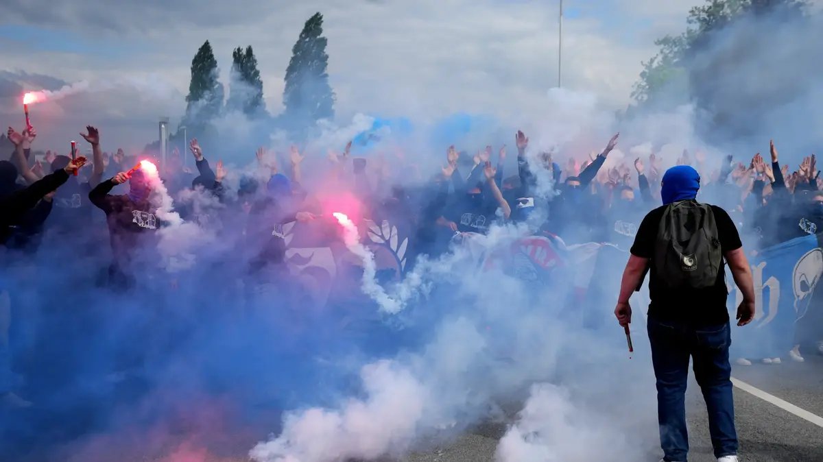 בדרך לאצטדיון, אותם אוהדים ניפצו חלונות ראווה, תקפו בעלי עסקים — בהם גבר בן 73 שנפצע בראשו — והשליכו אבוקות על אנשים. לפי עדים, הושמעו קריאות אנטי מוסלמיות והאוהדים שרו לתושבים: "היום זה יומכם האחרון".