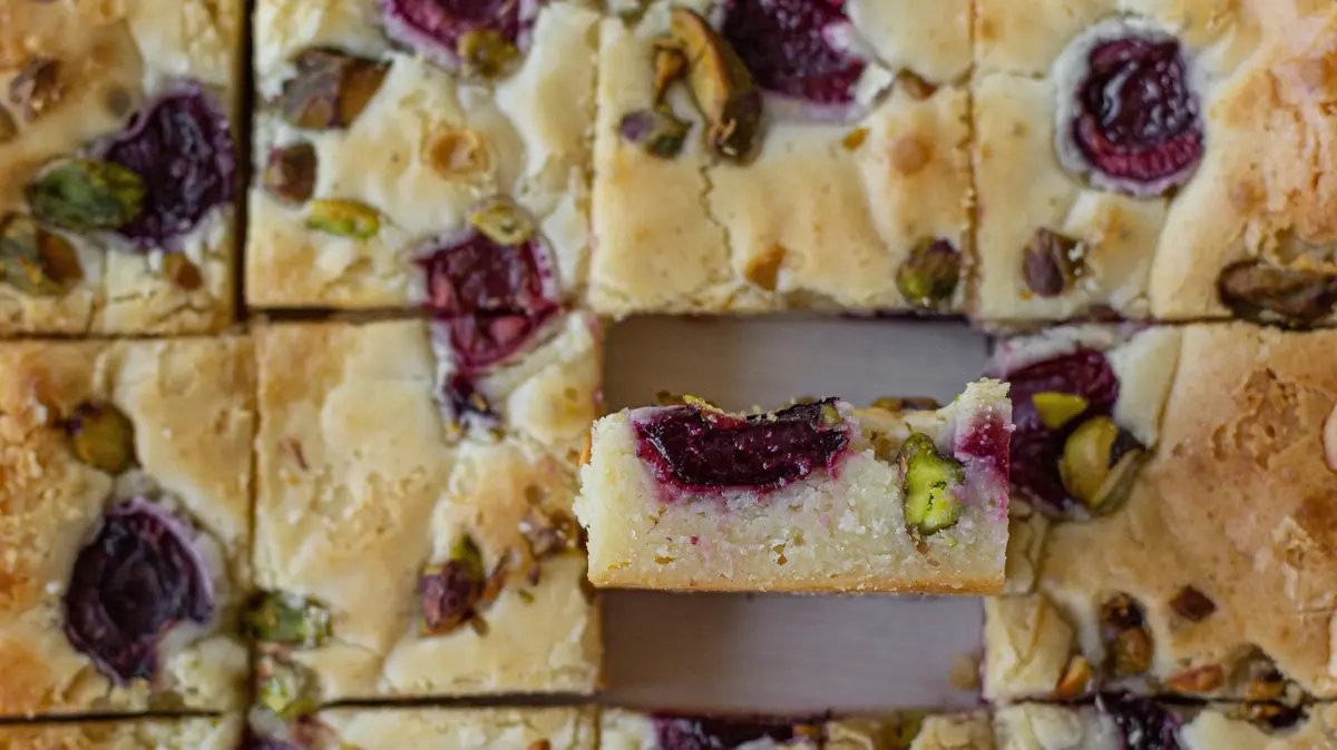 מהרגע שעליתי על המתכון הזה, אני לא מפסיק להכין אותו. פעם עם פטל, פעם עם שוקולד לבן מקורמל, ואפילו עם שברי עוגיות הם יוצאים נהדר (אבל אז מומלץ להגדיל קצת את כמות המלח). בגרסה הזאת, הדובדבנים והלימון מוסיפים חמיצות שמאזנת את המתיקות, והפיסטוקים מוסיפים קראנצ'יות כיפית.