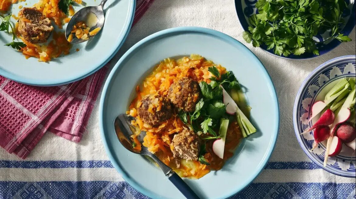2. לקציצות: מערבבים את שני סוגי הבשר, הבצל, ביצים, קמח מצה, מלח ופלפל שחור. לשים עד לקבלת תערובת אחידה, מכסים ושמים במקרר למנוחה של שעה.