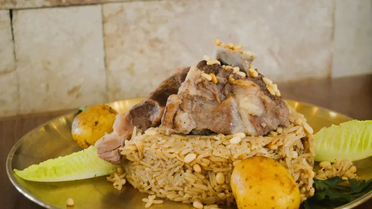 6. מעבירים את האורז למגש גדול, מסדרים מעליו את הבשר הטחון ומניחים למעלה את נתחי הבשר, בוזקים את הצנוברים ומגישים חם.