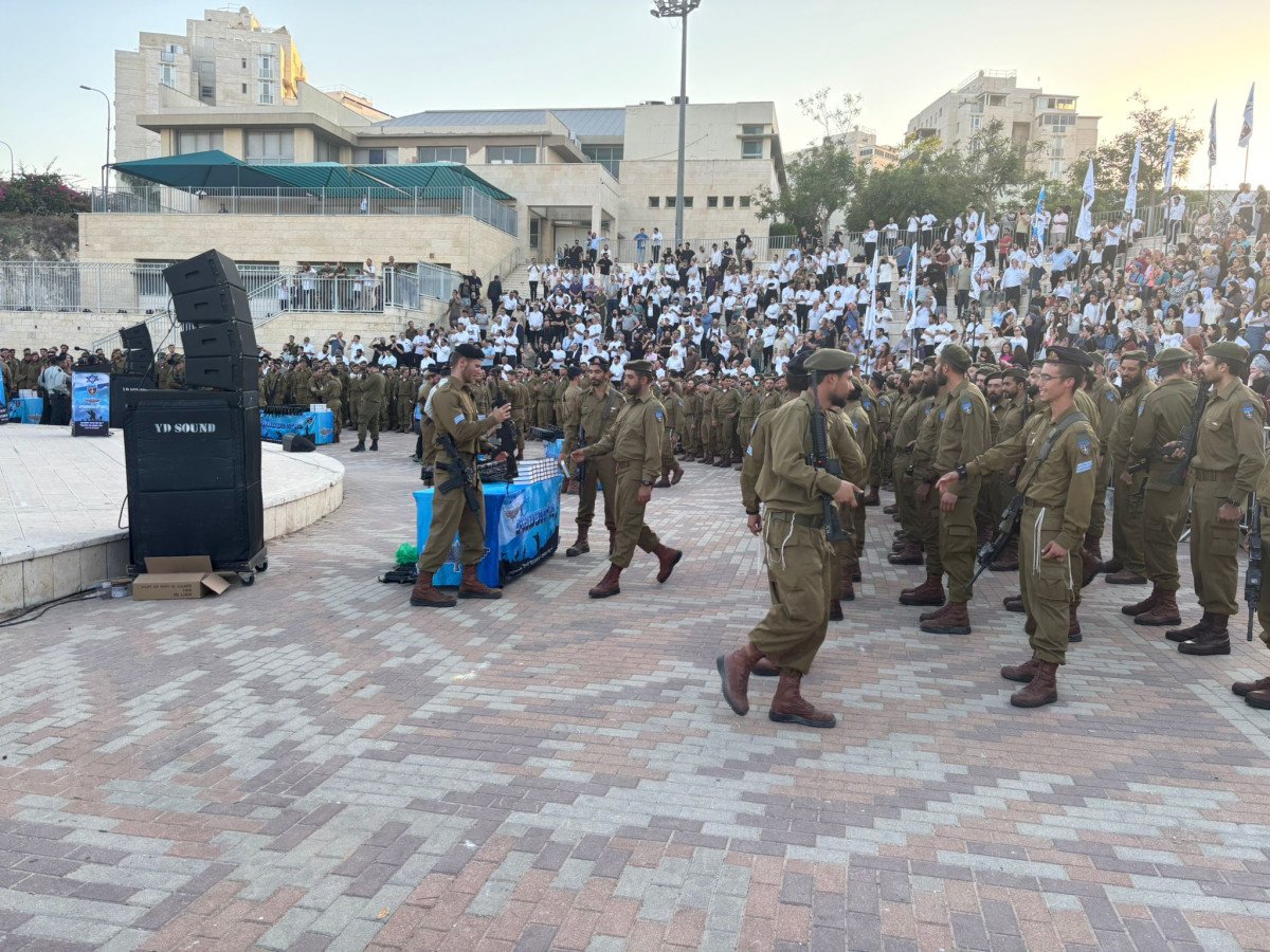 בשולי האירוע החגיגי, באיצטדיון המודיעין בו נערך האירוע הגיעו כ-40 חרדים להפגין תוך שהם צועקים לעבר בני המשפחות שנכנסו לטקס – ״בוגדים״ ו״נמות ולא נתגייס״. בני המשפחות לא התרגשו מהצעקות והשיבו להם בתנועת ניצחון. קציני הפלוגות שעלו לטקס התקבלו במחיאות כפיים והקהל אף כיבד בקימה להנפת דגל ישראל בתחילת הטקס.