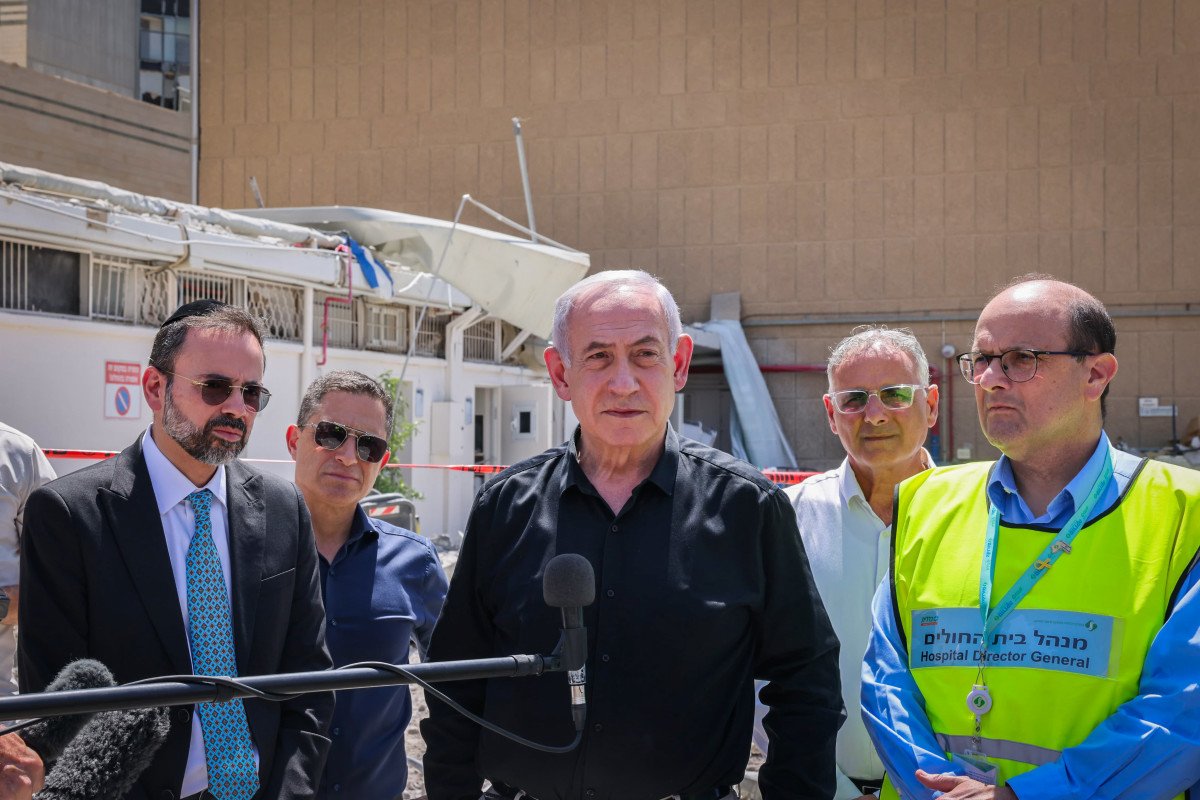 ראש הממשלה בנימין נתניהו ביקר היום (חמישי) בבית החולים סורוקה בבאר שבע, זמן קצר אחרי שבית החולים ספג פגיעה ישירה של טיל בליסטי ששוגר מאיראן. נתניהו מסר הצהרה לתקשורת ולאחר מכן גם ענה למספר שאלות של עיתונאים.