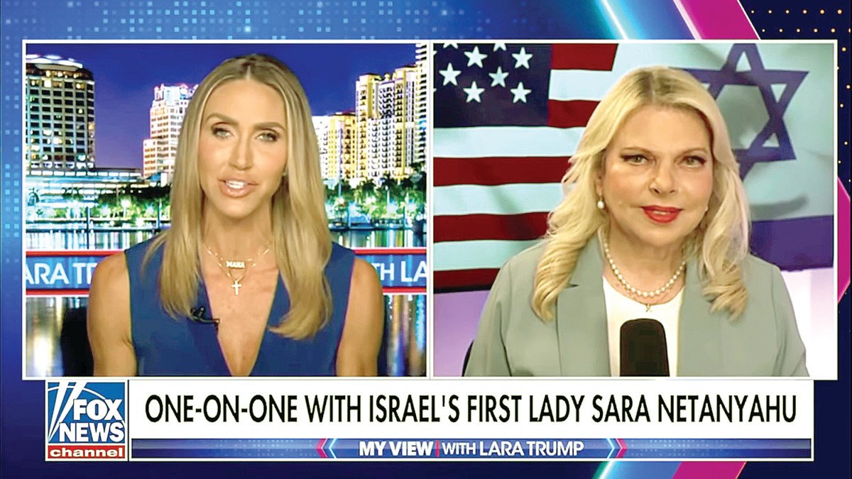 "MY VIEW", לארה טראמפ מראיינת את שרה נתניהו, פוקס ניוז: כצפוי לא היו שאלות קשות בריאיון של שרה נתניהו בתוכניתה של לארה טראמפ, והתוצאה הייתה, גם כן כצפוי, בזבוז זמן. לארה טראמפ היא רעייתו של אריק, בנו השלישי של הנשיא דונלד, פוליטיקאית וגם בעלת תוכנית ראיונות שבועית ברשת פוקס ניוז. במוצאי השבת האחרונה ראיינה טראמפ את רעייתו של ראש הממשלה הישראלי בשיחה טרנס־אטלנטית.