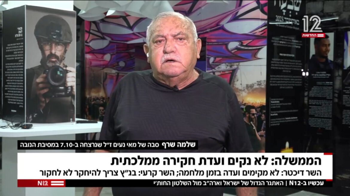 מאמן נבחרת ישראל בכדורגל לשעבר, שלמה שרף, אשר שכל את נכדתו, מאי נעים ז"ל, שנרצחה במסיבת הטבע ברעים בשבת השחורה, התראיין היום (שלישי) לחדשות 12 ותקף במילים קשות את ממשלת ישראל והעומד בראשה, בנימין נתניהו, לאחר ההחלטה על כך שלא תוקם ועדת חקירה ממלכתית לאירועי שבעה באוקטובר.
