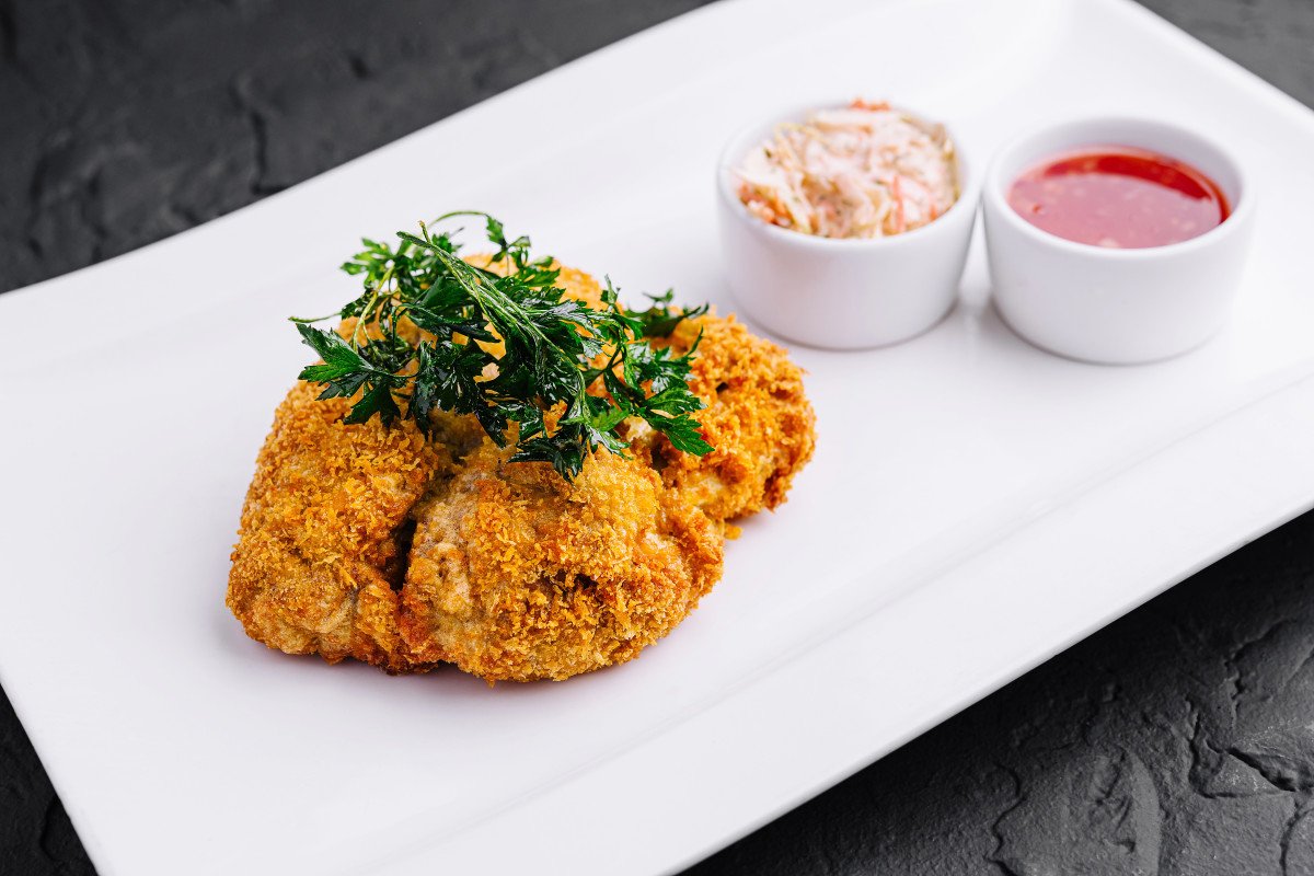 אם בוחרים בטיגון, מחממים כף או שתיים של שמן זית במחבת על חום בינוני-גבוה. כשהשמן חם, מניחים את השניצלים במחבת ומטגנים כ-4–5 דקות מכל צד, בהתאם לעובי הנתח. הציפוי צריך להיות זהוב והעוף מבושל עד הסוף. עם סיום הטיגון, מעבירים לנייר סופג ומפזרים מעט מלח.