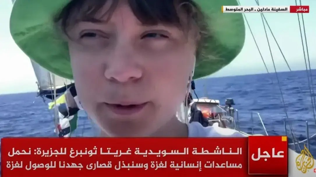 מוקדם יותר, התראיינה תונברג לערוץ אל-ג'זירה "נשקיע את מירב המאמצים בכדי להגיע לרצועה מחר או מחרתיים". לדבריה, "יש הרבה כטב"מים החגים מעלינו, במיוחד בלילה. התרחיש הכי קשה שאנחנו מצפים לו הוא שהעולם ימשיך עם ההסכמה שלו לגבי רצח העם, לגבי הרג החפים מפשע ולגבי הסבל של הרבה מאוד חפים מפשע ברצועת עזה".