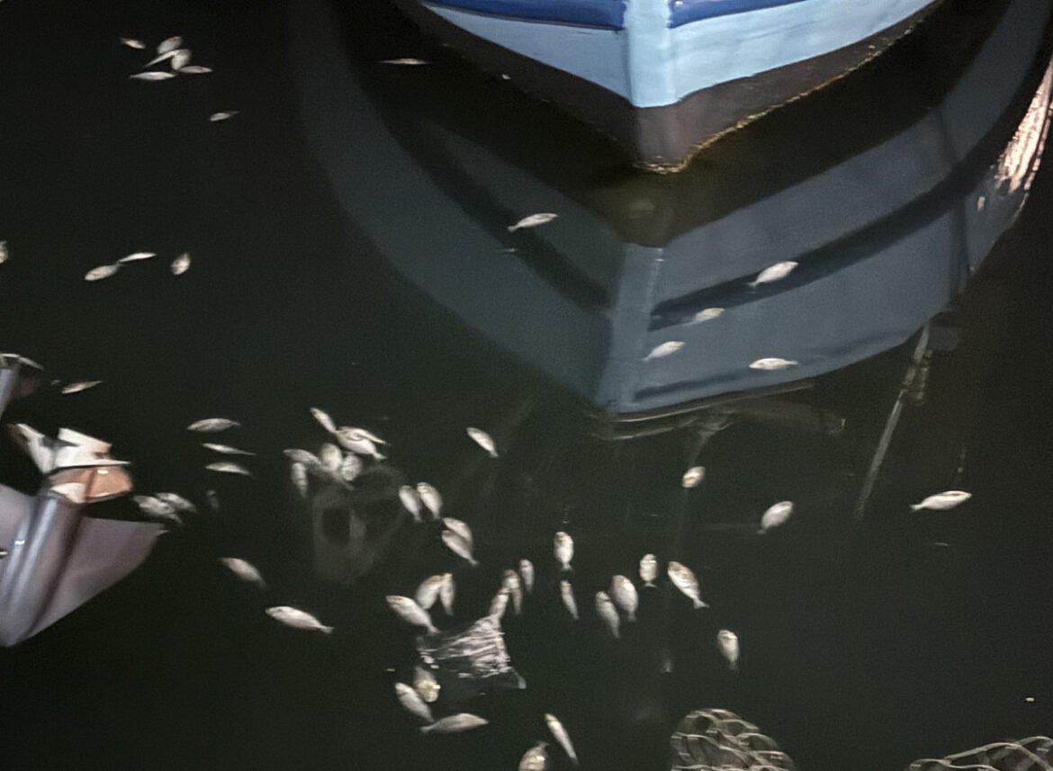 תמותת דגים בנמל יפו, מתוך דיווח באפליקציית SeaWatch (צילום: באדיבות החברה להגנת הטבע)